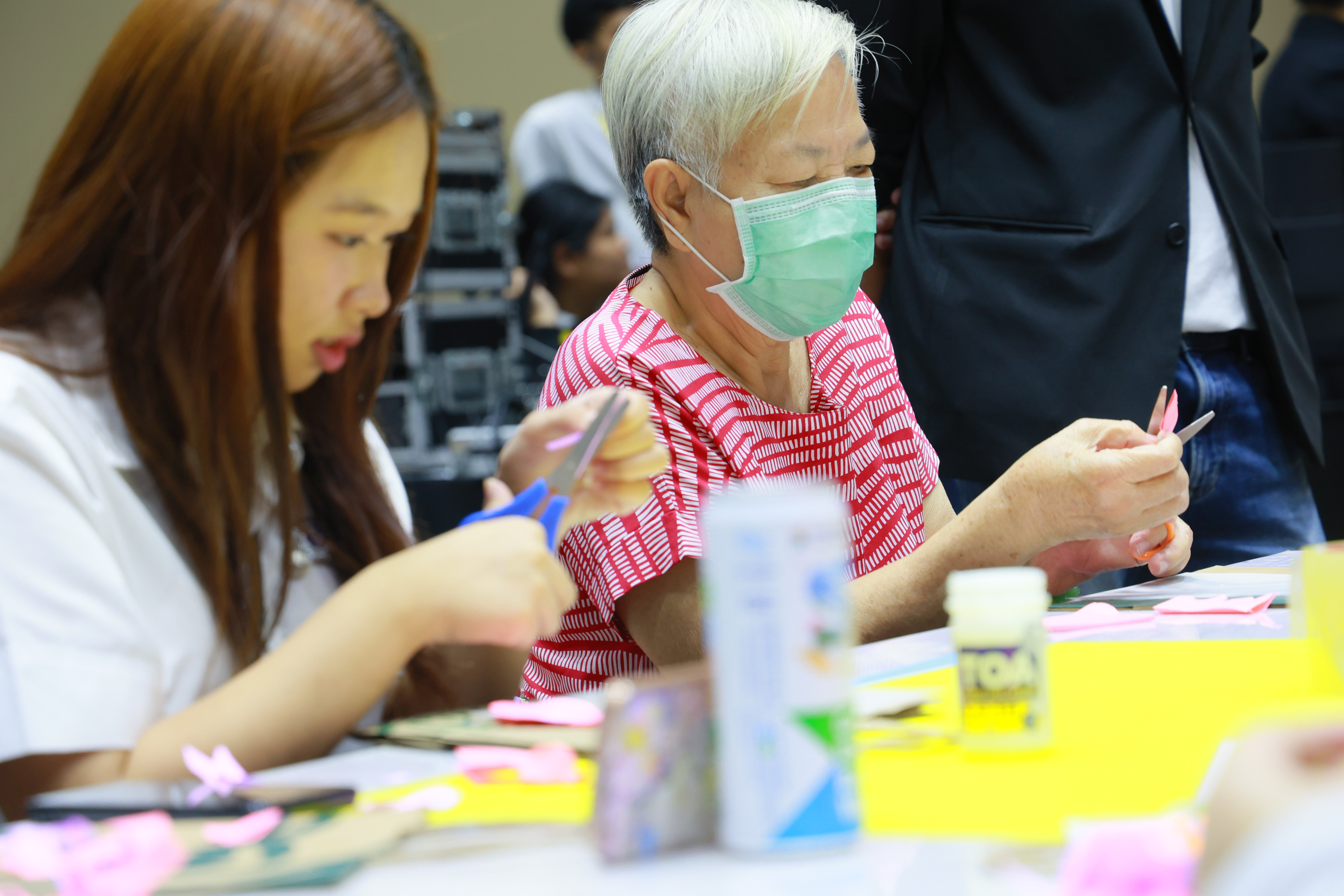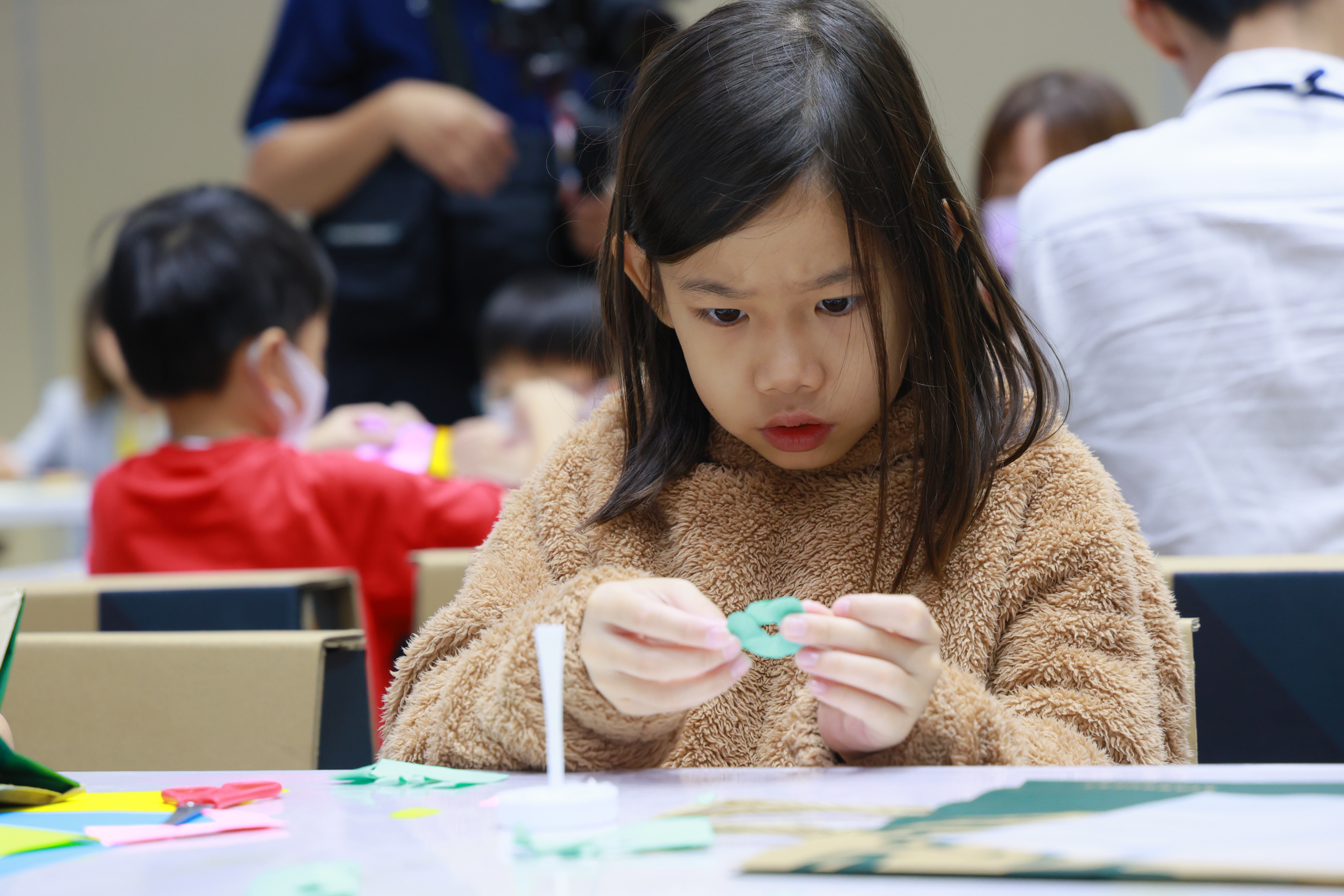 ผู้เข้าร่วมเวิร์กชอปลงมือสร้างสรรค์ผลงานจากเศษกระดาษกันอย่างสนุกสนาน หลากหลายสีสัน ขึ้นอยู่กับไอเดียของแต่ละคน ซึ่งคุณแป้งบอกว่าทุกคนสามารถนำความรู้จากกิจกรรมครั้งนี้ไปต่อยอดเป็นผลงานอื่น ๆ ได้ เช่น เปลี่ยนเป็นรูปสัตว์ ต้นไม้ ส่วนกระดาษและเศษวัสดุ ที่เลือกมาใช้ก็ขึ้นอยู่กับความชอบ จินตนาการ และวัสดุที่มีอยู่รอบตัวทุกคน ไม่เจาะจงว่าใบไม้ต้องเป็นสีเขียว ดอกไม้ต้องเป็นสีชมพูเพียงอย่างเดียว สิ่งสำคัญที่คุณแป้งเน้นย้ำ คืองานศิลปะทำให้เราได้หันมาอยู่กับตัวเองมากขึ้น ในยุคที่ทุกคนอยู่กับโลกโซเชียล แค่มีกระดาษ กรรไกร กาว เราก็สามารถสร้างผลงานศิลปะที่ดีต่อใจขึ้นมาได้