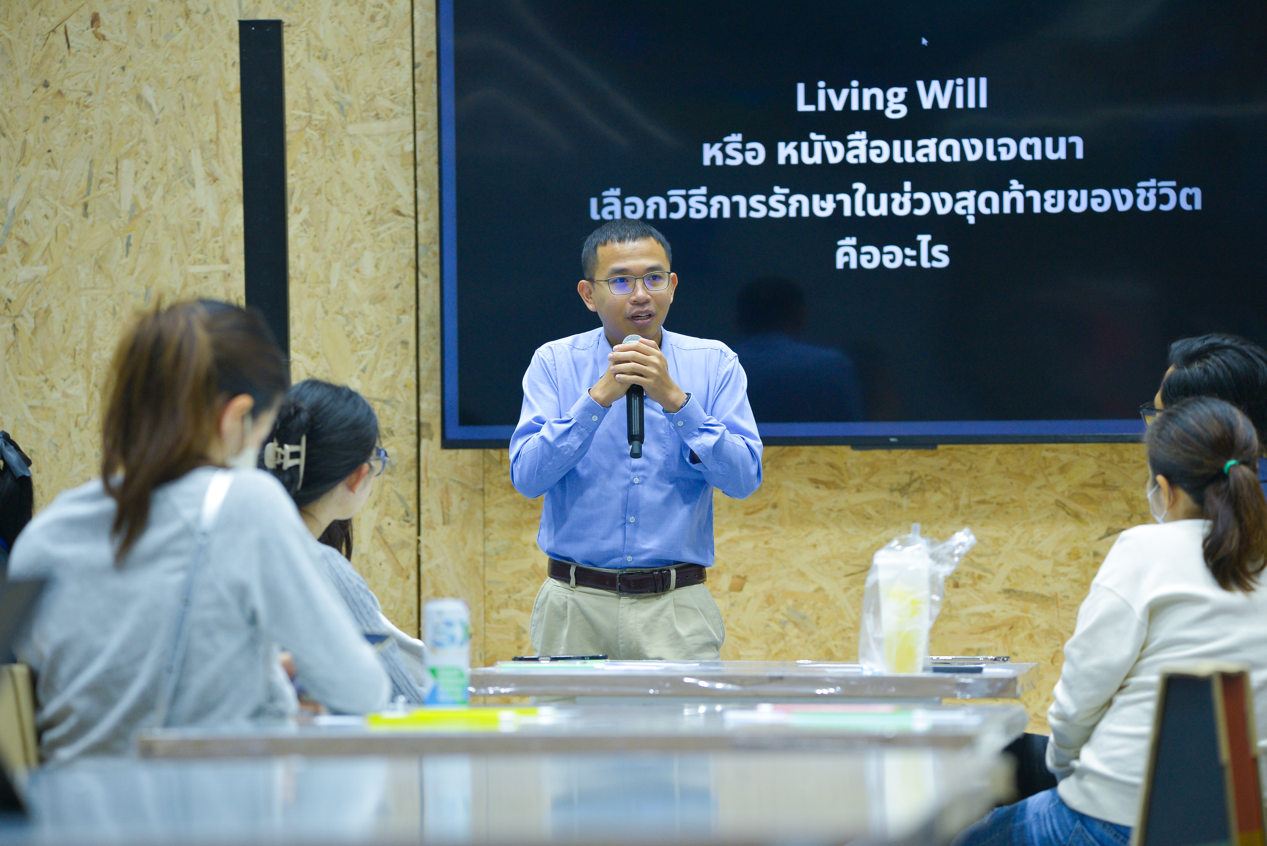 After that, participants were guided to write their own Life Companion Journal to reflect on and plan different aspects of life—particularly by drafting, in their own handwriting, an advance directive (Living will) stating their wish not to have life-prolonging treatment in their final days. The journal included many prompts for self-reflection, such as defining what “a good quality of life” means and clarifying what kind of end-of-life care they desire. Thanaporn emphasized that even after writing a Living Will, the most important step is to communicate those wishes clearly with the person who holds decision-making authority and with family members. This ensures mutual understanding and respect for one’s intentions on the day when they can no longer speak for themselves.