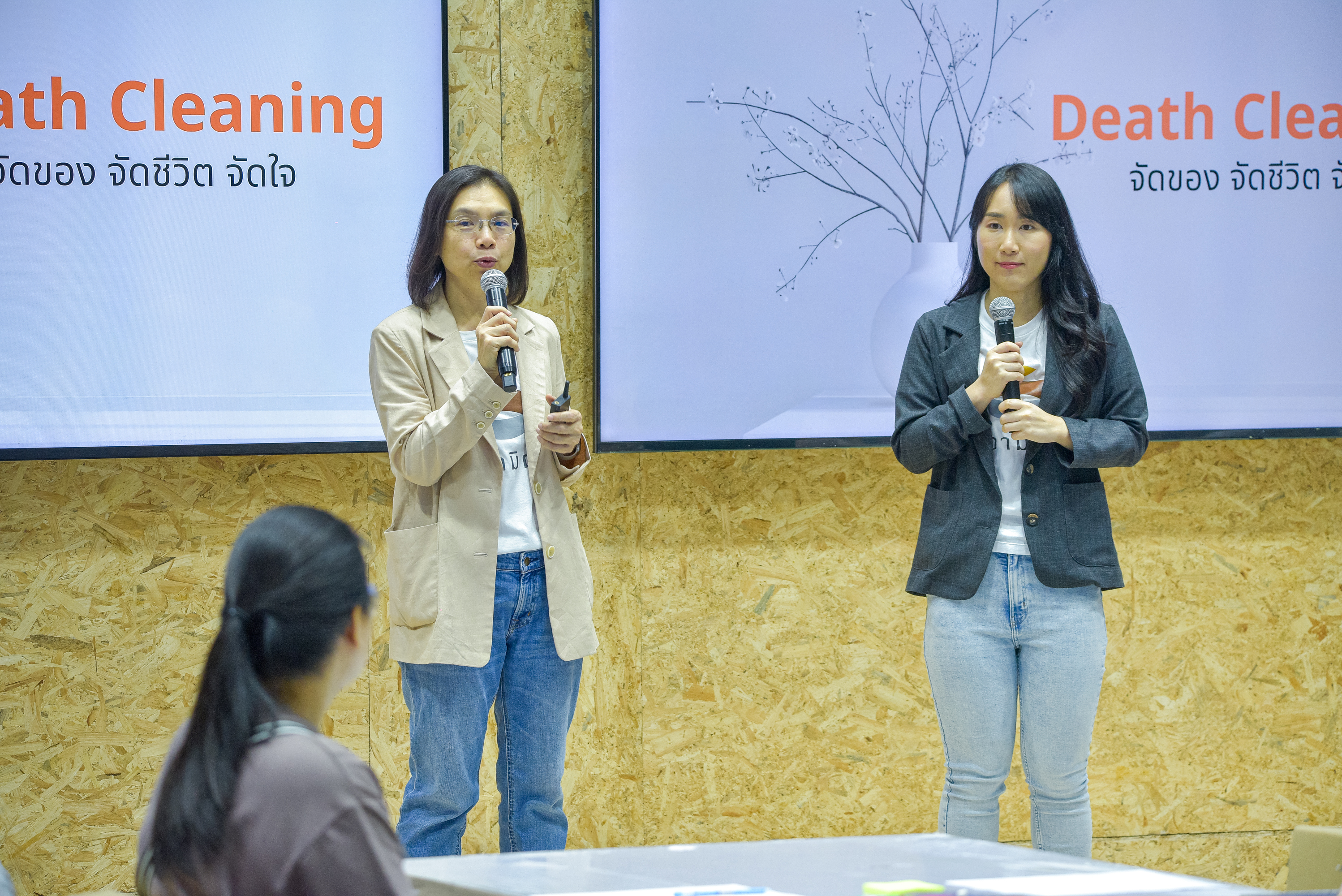 The second activity, DEATH CLEANING: Putting Life in Order Before Departure, was held on October 4, 2025, with speakers Khaisri Wisutthiphinet, , General Manager of Cheevamitr Social Enterprise, and Tathadanunun Sawetsrithawal, Spiritual Health Influencer and HR & OD Consultant and Empowerment Facilitator, who guided participants in learning and practicing how to organize their belongings.