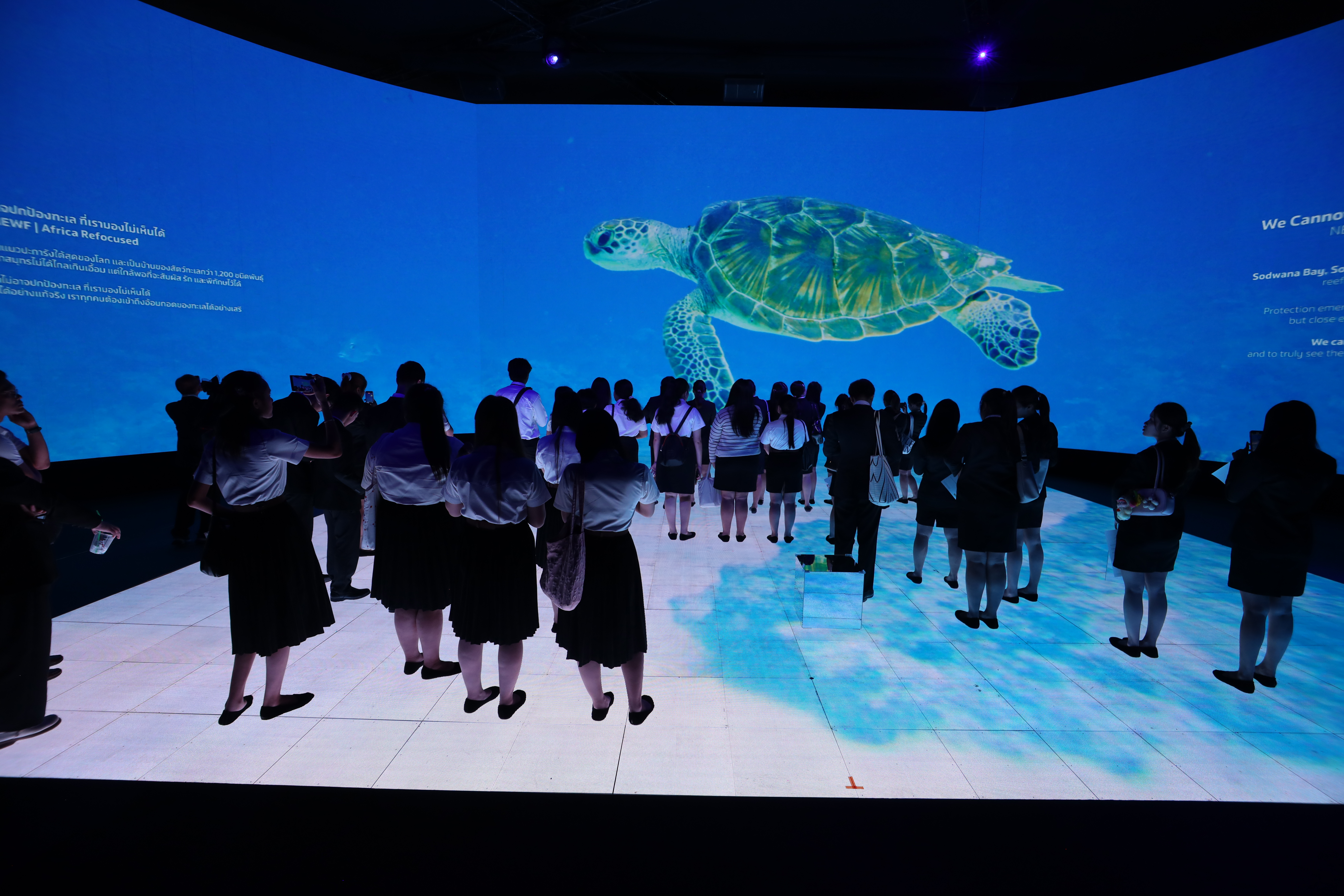 นี่คือไฮไลต์ที่ดึงดูดใจที่สุด ด้วยประสบการณ์แบบดื่มด่ำ (Immersive) ผ่านภาพถ่ายและวิดีโอจากมุมมองของนักสำรวจระดับโลก ที่บอกเล่าเรื่องราวความอัศจรรย์ทางธรรมชาติที่กำลังเปลี่ยนแปลงไป เช่น การสำรวจ ถ้ำซันดอง (Son Doong Cave) ถ้ำที่ใหญ่ที่สุดในโลก โดย มาร์ติน เอ็ดสตรอม เผยให้เห็นระบบนิเวศเก่าแก่ 25 ล้านปี หรือเรื่องราวของ อ่าวซอดวานา (Sodwana Bay) ในแอฟริกาใต้ ที่เป็นแนวปะการังใต้สุดของโลกและบ้านของสัตว์ทะเลกว่า 1,200 ชนิดพันธุ์ บทเรียนเหล่านี้ย้ำเตือนว่า มหาสมุทรไม่ได้ไกลเกินเอื้อม แต่ใกล้พอที่เราจะ "สัมผัส รัก และพิทักษ์"
