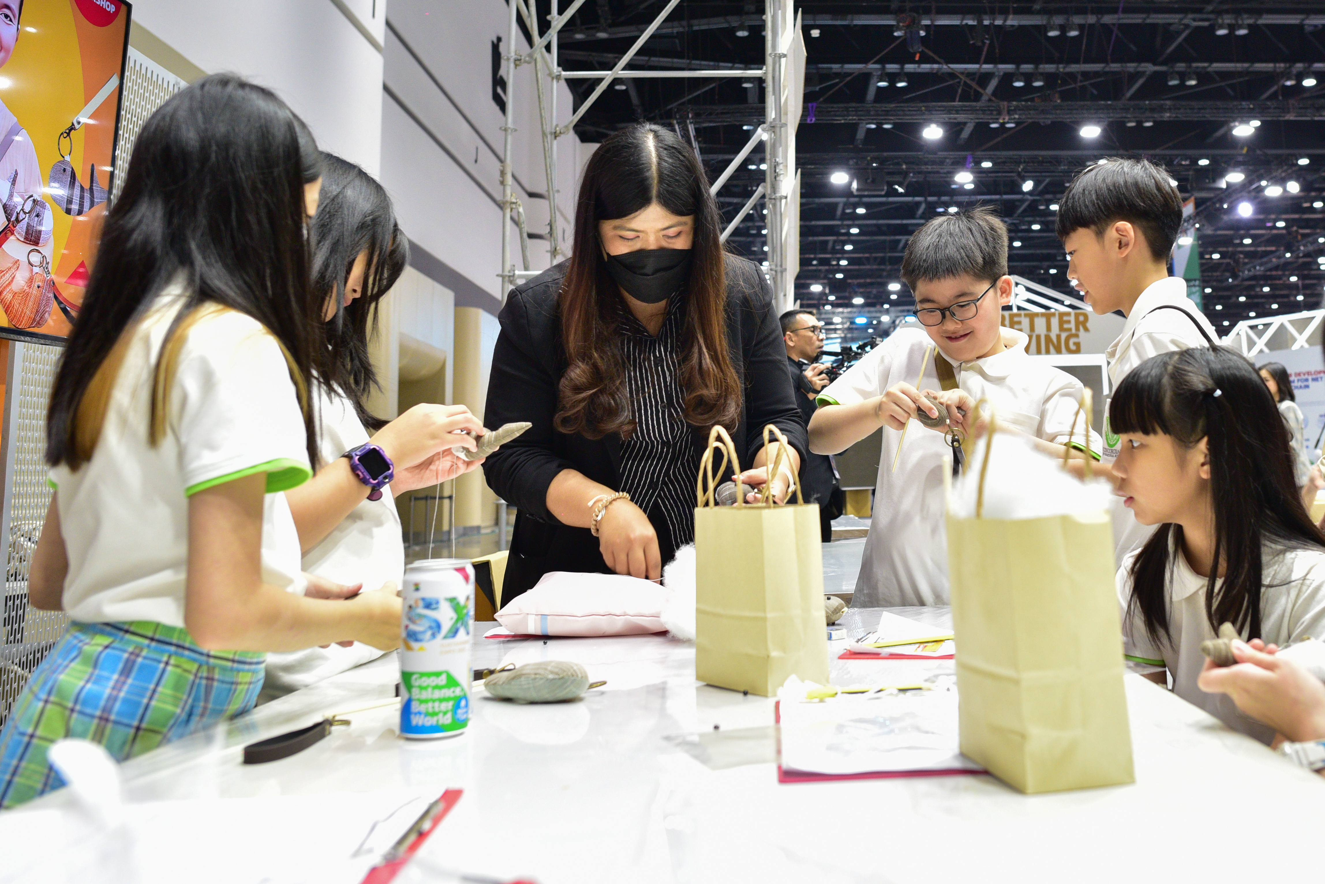 คุณสุทธินันท์ ภมรสุทธิ หนึ่งในผู้เข้าร่วมกิจกรรม พาลูกชายน้องปัณณวีร์ ก้องวงศ์วณิช มาร่วมเวิร์กชอปด้วยความตั้งใจ เพราะเคยประทับใจกับกิจกรรมในปีที่ผ่านมา โดยเฉพาะในโซน SX IDEA LAB ที่เต็มไปด้วยความสนุกและสร้างสรรค์สำหรับเด็ก เธอเลือกเข้าร่วมเวิร์กชอป “การทำพวงกุญแจจากเศษผ้า” ซึ่งเปิดมุมมองใหม่ให้กับทั้งแม่และลูก โดยเฉพาะการได้เห็นว่าวัสดุธรรมชาติ เช่น เศษผ้าจากการทอ สามารถนำมาสร้างสรรค์เป็นของใช้ได้จริง พร้อมเรียนรู้แนวคิดการใช้ต้นผลไม้พันปี ชมพู่ป่า และอื่น ๆ มาเป็นสีในการย้อมผ้า ซึ่งเป็นสิ่งที่เธอยอมรับว่า “ไม่เคยรู้จักมาก่อน ก็เลยลงทะเบียนมา” คำพูดนี้สะท้อนถึงความตั้งใจในการเปิดรับสิ่งใหม่ ๆ และการเรียนรู้ร่วมกับลูกชายผ่านกิจกรรมที่ให้ทั้งความสนุกและสาระ