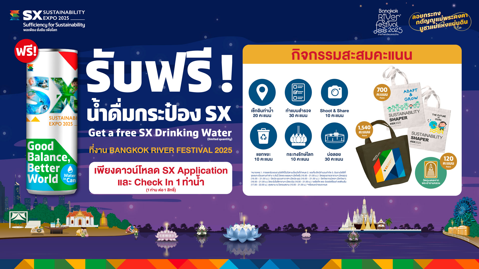 ลอยกระทงปีนี้ มาช่วยกัน “ลอยกระทงรักษ์โลก ลดโลกเดือด” ที่งาน Bangkok River Festival 2025 แค่ร่วมกิจกรรมง่าย ๆ ก็ได้ทั้งความสุข และของที่ระลึกสุดพิเศษจาก SUSTAINABILITY EXPO 2025